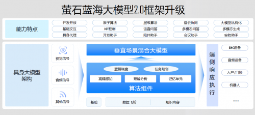 萤石蓝海大模子捏续进化,在2025年6月迎来了全新升级的2.0版块,聚焦技能身手与场景欺诈的双重落地,通过多维和会、模态膨大与专项缅思三大技能旅途,已毕感知、辅导、缅思身手的三重增强,同期助力垂直鸿沟,作念到专项身手、定向优化、精确就业,措置用户的痛点和难点。