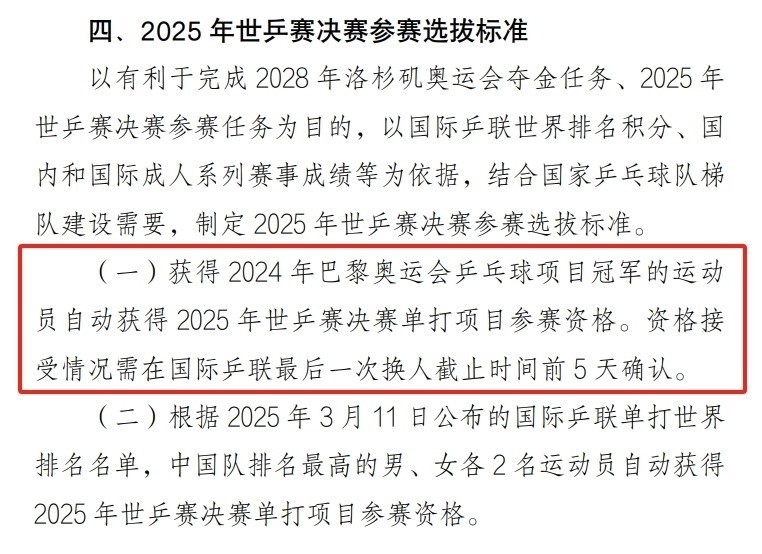 中国乒协此前发公告明确暗意,2024年巴黎奥运会单打冠军可平直获取世乒赛单打阅历,这一章程源于2025年1月公布的《多哈世乒赛参赛采用主义》第一条,相干词,即便樊振东手捏“纵贯门票”,其赓续缺席外洋赛事的行动,已让外界对其劳动假想产生疑虑,不外这在那时,奥运冠军自动入围的规矩如故激励了争议,字据外洋乒联与中国乒协的王人集章程,巴黎奥运会冠军可平直获取世乒赛单打阅历,无需参与队内采用赛,这一战术旨在保险顶尖选手的大赛参与权,但也因“特权化”激励争议;与此同期,樊振东算作巴黎奥运会男单、男团双料冠军,自动获取2025年多哈世乒赛阅历,相干词自2024年奥运后,他已赓续缺席11项外洋赛事,仅参加全锦赛和乒超联赛,尽管耕种组屡次强调“尊重个东谈主弃取”,但外界对其“占位不参赛”的质疑声不断